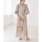 シャツワンピース quaranciel:「洗濯機可能」シャンブレー パフ ロング シャツ ワンピース