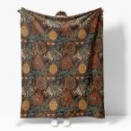 【並行輸入品】ボーホー ヴィンテージ フローラルプリントブランケット、ラスティックソフトフランネル軽量スローブランケット、ブラウン/ピーチパフ/