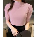 tシャツ ハイネック パフスリーブ 半袖 ニット トップス レディース