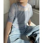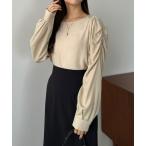 tシャツ クレープシャーリングパフスリーブトップス レディース