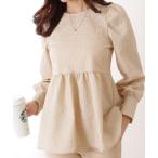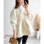 フラワー ジャガード 長袖 ペプラム パフスリーブ プルオーバー レディース
