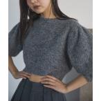 ニット セーター 「ハンドウォッシャブル」ウール混起毛パフスリーブクロップドニット レディース