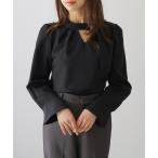 ブラウス シャツ スタンドカラー パフスリーブ風 タイ付き 長袖 ブラウス レディース