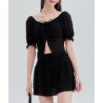 水着 「2点セット」フロントシャーリング シアー パフスリーブ セパレート 水着 レディース