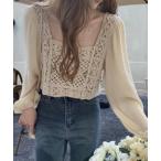 ブラウス シャツ 軽やかなパフスリーブ長袖スクエアネックトップス レディース