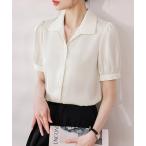 ブラウス シャツ ソリッドカラー 開襟 パフスリーブ 半袖 シャツ レディース