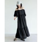 ワンピース ホルターリボン付き パフスリーブ マキシ ギャザー ワンピース