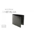 ふるさと納税 マットクロコ二つ折り札入れ メンズ ブラック 東京都墨田区