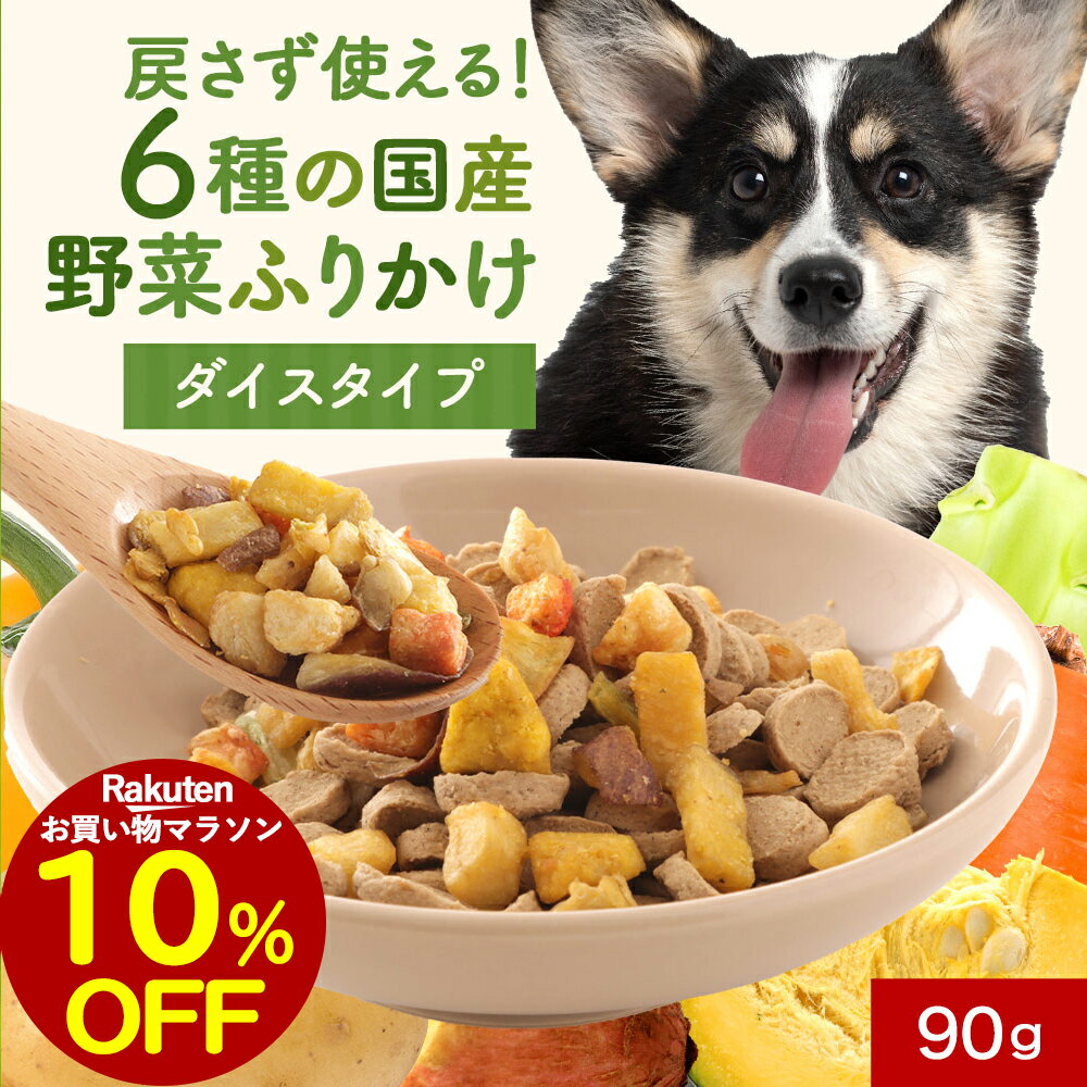 【10%OFFセール!】犬 野菜 ふりかけ 有機ココナッツオイルの栄養プラス!戻さず使える 6種の野菜ふりかけ ダイスタイプ 90g 国産 ごはん トッピング ご飯 おやつ サプリ サプリメント ドッグフード ブドウ糖不使用 ヒューマングレード レビュー特典 nkdy