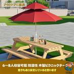 屋外テーブル ガーデンテーブル ガーデンテーブルセット木製ガーデンパラソルを立てる取り外し可能なパラソル付き屋外テーブル、6〜8人用の大型キャンプテーブル