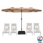 10%クーポン11日まで★ ガーデンテーブル チェア テーブルセット パラソル パラソル付き 7点 4人掛け 幅150cm 肘付き チェア ガーデン ベランダ おしゃれ 屋外 外用テーブル ガーデン 150テーブル 7点セット 肘ありチェア4脚+ストレートパラソル+土台 クアロア