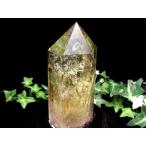 虹入り シトリン ポイント 六角柱 専用木製台座付 高さ約160mm 重さ681.5g 黄水晶 11月の誕生石 一点もの ブラジル産 パワーストーン 天然石
