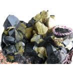 迫力の特大 緑簾石 エピドート 共生 天然 黒水晶 モリオン クラスター原石 重さ13220g 最大幅約295mm 大自然の力強さを感じる漆黒の水晶