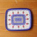 ポーランド食器 ポーリッシュポタリー スクエアプレート ケーキ皿 角皿 18cm いちごの実 ストロベリー フルーツ柄 v173-c210 ボレスワヴィエツ陶器 Boleslawiec