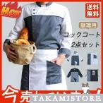 コックコート メンズ レディース 男女兼用 コック服 調理服 長袖 半袖 2点セット エプロン アイス 接触冷感 高品質 パン屋 ケーキ屋 通気性