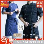 コックコート メンズ レディース 男女兼用 コック服 調理服 2点セット エプロン セット デニム 長袖 調理用 トップス ケーキ屋 コックウェア
