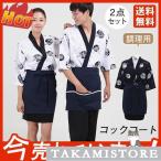コックコート メンズ レディース 男女兼用 コック服 調理服 半袖 2点セット エプロン 和風 飲食店 トップス 厨房 調理用