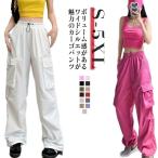 カーゴパンツ レディース パラシュートパンツ ワイドパンツ ワークパンツ ダンス衣装 ヒップホップ 無地 体型カバー ロング丈