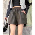 パンツ レザー調 ウエストゴム ショート キュロット レディース