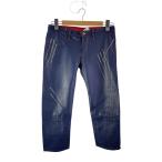 極美品△CHANEL シャネル P60217V46019 コットン100% ココマークボタン ダメージチュール クロップド デニムパンツ インディゴブルー 34 イタリア製 正規品 レディース オススメ◎【中古】