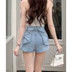 ジーンズ デニム デニムパンツ バックリボン デニムショートパンツ レディース