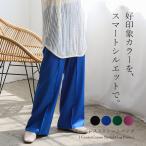 SALE スラックス レディース カラーパンツ センタープレス イージーパンツ ウエストゴム ストレート ロング丈 blc-y29526 aroco/アロコ