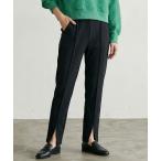 スラックス パンツ 美脚センタープレステーパードパンツ フロントスリット ストレッチジョーゼット レディース