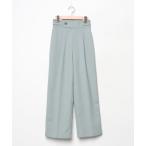 スラックス パンツ 「mily bilet」大人ガーリーボトム。ウエスト折り返しリボンストラップ2WAYセンタープレスハイウエストワイドスラックスパン