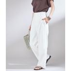 スラックス パンツ リネンレーヨンツイル タックワイドパンツ レディース