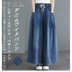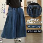 ワイドパンツデニムバギーパンツ レディースチノパンツ デニムボトムスジーンズデニム ロングパンツズボンガウチョパンツウエストゴム ゆったりデニム春夏コーデ