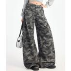 ジーンズ デニム デニムパンツ カモフラ柄バギーワイドパンツ レディース