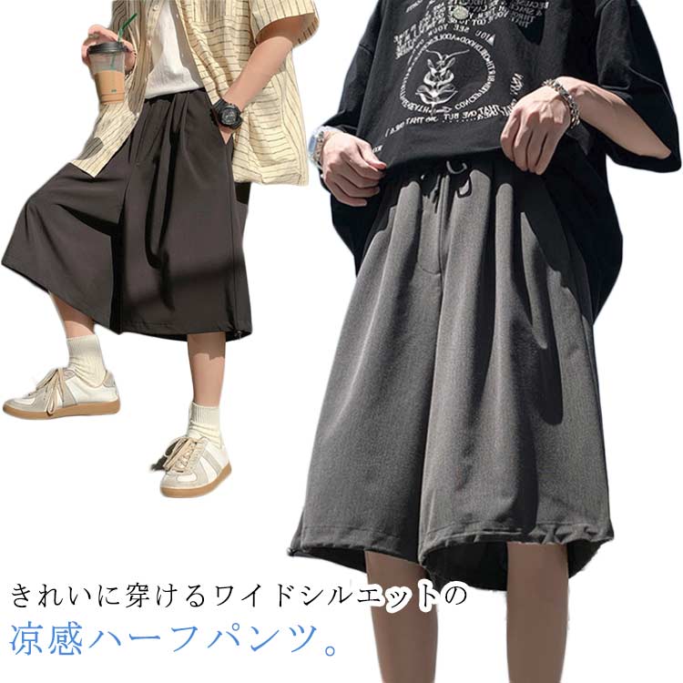 おしゃれ アイスシルク 半ズボン ハーフパンツ ハーフパンツ パンツ ワイドパンツ ハーフパンツ ショートパンツ 無地 5分丈 凉感 快適 ひざ下 イージーパンツ 薄手 七分丈 夏 バミューダパンツ 韓国ファッション かっこいい 夏服 春 夏