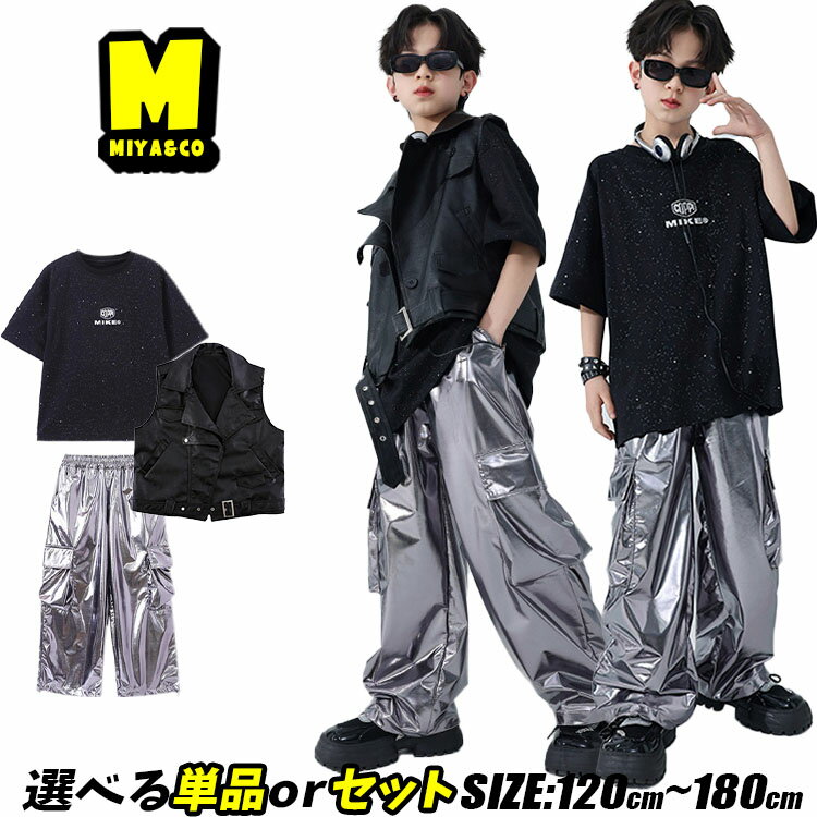 シルバー キッズダンス衣装 レザーベスト ダンス キッズ カーゴ パンツ シルバー キッズダンス衣装 セットアップ k-pop 演出服 キッズダンス 衣装 ヒップホップ hiphop衣装 上下セット キッズ ダンス 黒tシャツ 韓国 ストリート系 子供服 団体服 ステージ 衣装 男の子 女の子