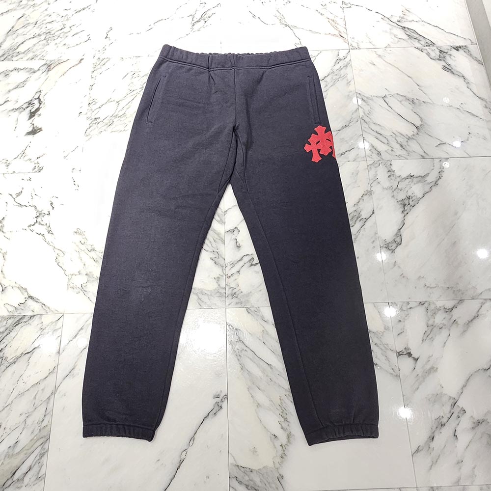 CHROME HEARTS Y NOT 3 Cemetery Cross Leather Patch Sweat Long Pants Size L クロムハーツ ワイノット 3セメタリークロス レザーパッチ スウェットロングパンツ シルバーロゴプレート ネイビー×レッド サイズL【251119】【中古-B】