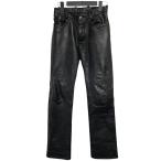 【中古】 CHROME HEARTS クロムハーツ フレアニー レザー クロスボールボタン パンツ サイズ:28SR ブラック 24034080DS