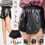 送料無料 ショートパンツ レザー調 レディース 女性 ボトムス ショート丈 ウエストゴム スリット ハイウエスト 無地 単色 シンプル クール 甘辛MIX PUレザー ブラック 黒 おしゃれ かっこいい ラクチン お出かけ 大きいサイズ 婦人用