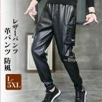 レザーパンツ メンズ 革パンツ 皮パンツ サルエルパンツ バイクパンツ フェイクレザー PU ライダー バイカー 着痩せ 防風 撥水 ダンス おしゃれ