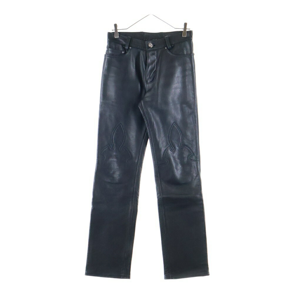 CHROME HEARTS(クロムハーツ) サイズ:29SR LTHR PANTS クロスボールボタン 5ポケット フレアニー ボタンフライ レザー ストレートパンツ ブラック【中古】【程度B】【カラーブラック】【取扱店舗OneStyle新宿店】