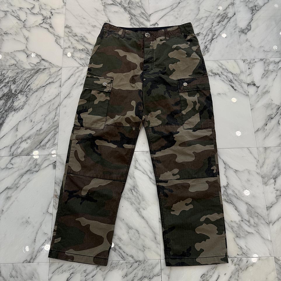 CHROME HEARTS Cross Ball Button Camo Cargo Pants Size 32 クロムハーツ クロスボールボタン カモ カーゴパンツ コットンパンツ CHプラス ホースシューボタン クロスパッチ レザーパッチ ボタンフライ 迷彩柄 カモフラージュ サイズ32【251115】【中古-A】