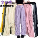 無地 ワイドパンツ ワークパンツ カラーパンツ おしゃれ ダンスパンツ ウエストゴム カーゴパンツ ロングパンツ ゆったり ゆったり 春夏 カーゴパン