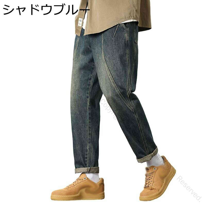 デニムパンツ メンズ テーパードパンツ ヴィンテージ ロングパンツ ジーパン ウォッシュ加工 アンクル丈 裾ロールアップ ゆったりシルエット おしゃれなボリューム感 毛玉しにくい 耐摩耗性 ストレートGパン 秋冬向けファッション