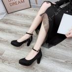 パンプス ローヒール アンクル ストラップ ロー ヒール 黒 痛くない 9cm 美脚 ハイヒール パンプス スウェード 太ヒール ストーム 婦人靴 きれいめ 結婚式