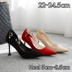 パンプス ポインテッドトゥ ハイヒール アンクルストラップ エナメル パンプス