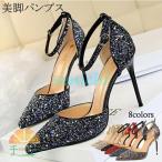 アンクルストラップ パンプス キラキラ ハイヒール ポインテッドトゥ ヒール10センチ ラメ サンダル 歩きやすい レディース 美脚 結婚式 卒業式 入学式