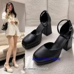 レディース 定番 おでこ パンプス アンクルストラップ ゴスロリシューズ ヒール太い