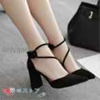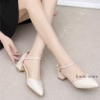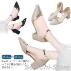 パンプス ローヒール サンダル 美脚パンプス ポインテッドトゥ アンクルストラップパンプス チャンキーヒールパンプス レディースシューズ 通勤 OLシューズ 黒