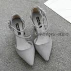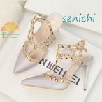 サンダルパンプス ハイヒール レディース スタッズ ポインテッドトゥ キャバパンプス アンクルストラップ結婚式靴 パーティー