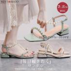 ストラップサンダル レディース ローヒール 美脚 歩きやすい シューズ アンクルストラップ 大人 おしゃれ 夏 25.0cm パンプス パール付き