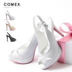 COMEX パンプス ハイヒール オープントゥ ラメ サンダル ヒール14cm ピンヒール アンクルストラップ ベージュ シルバー ブラック 5693