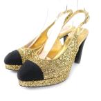良品★CHANEL シャネル G37586 ココマーク刺繍入り アンクルストラップ グリッター パンプス ゴールド 36.5 イタリア製 レディース